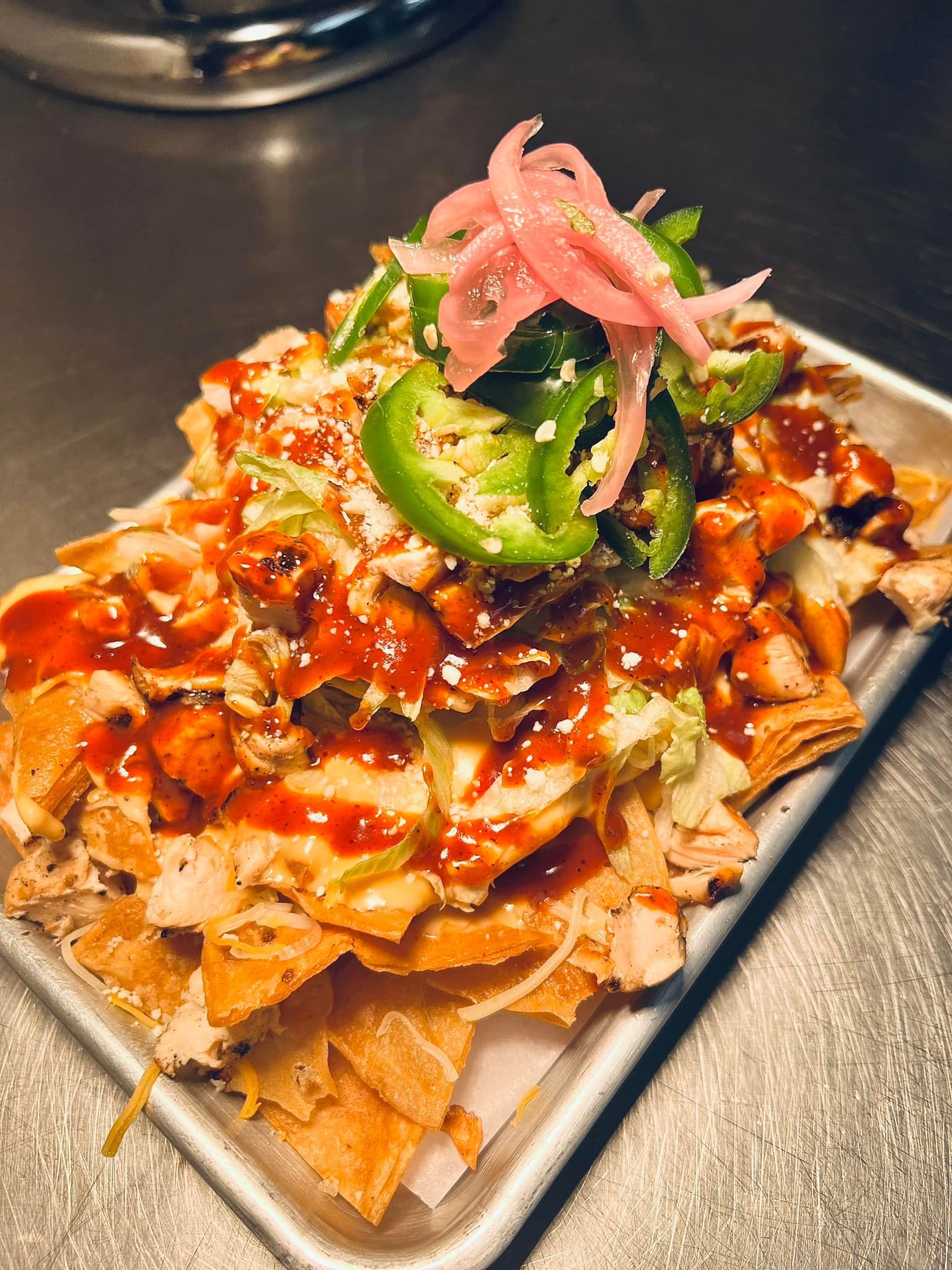 Yellow Corn Tortila Chips, Queso Dip, Seasoned Beef & Chorizo, Shredded Lettuce, Cheddar-Jack Cheese, Pico de Gallo, Pickled Jalapenos, Salsa Verde, Sour Cream